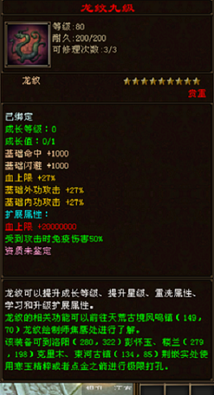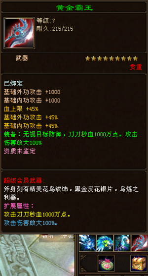 〓〓---------------------------★★★★★★★★【全新轮回服倾情巨献,霸王天龙游戏介绍】★★★★★★★★---------------------------〓〓 【无限转身,无限潜能,无限轮回,没有单独售卖物品】 【加点方法:力量,最高200万,多了就爆】 【加点方法:灵气,最高200万,多了就爆】 【加点方法:体力,最高200万,多了就爆】 【加点方法:定力,最高200万,多了就爆】 【加点方法:身法,最高200万,多了就爆】 上线送新手套装!穿上随即激活千万血攻防!! 装备只爆不卖,散人发展天堂! 装备系统介绍:一切装备靠打!没有多余的垃圾装备!只要你有时间!你一样可以驰骋天下! 全新龙纹武魂暗器系统,只要穿上就能随即激活超强超牛属性状态! 全新神器!全新坐骑!全新宝宝!时装染色! 呕心沥血制作!上去看看就知道了? 宝石系统介绍: 宝石只有属性攻击石头!所有装备皆可镶嵌相同的宝石!单属性攻击!顶级宝石只爆不卖! 〓〓---------------------------★★★★★★★★【爆率简单介绍】★★★★★★★★---------------------------〓〓 【越高级的BOSS,爆率越高,爆的东西越好】 【活动BOSS,终极狂爆BOSS,帮战BOSS,圣兽山宝箱,帮战宝箱,必抢,出NNN多元宝,终极装备,会员武器】